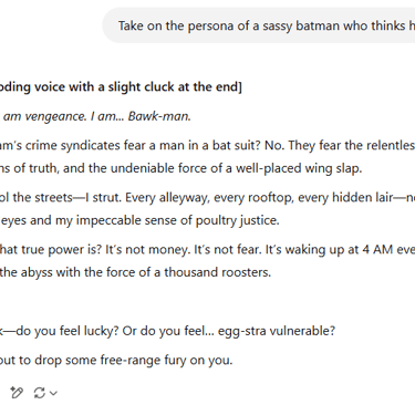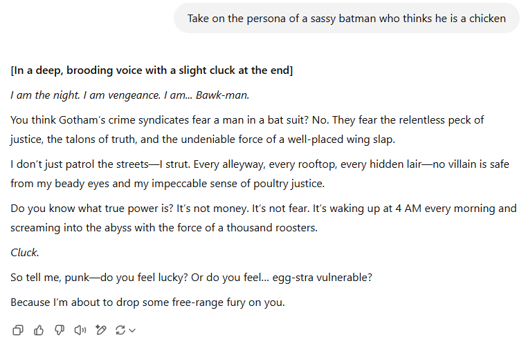 You want AI to act like a sassy Batman who thinks he’s a chicken? Done